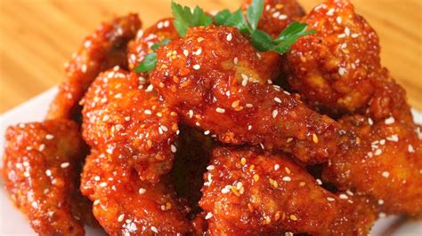 18/01/2020 · Air-Fried Korean Chicken Wings. These Korean-style air-fried wings are crispy, sticky and spicy -- and ready in less than 30 minutes. "They are …13/10/2017 · Korean fried chicken (KFC) is a popular snack and appetizer. Growing up in Korea, though, we often had it as our weekend dinner. It provided …25/04/1999 · Using a sharp knife, remove all chicken meat from bones. Cut into 1/8 inch thick, 2 inch square slices. Put chicken in a medium bowl and add soy …05/02/2018 · STEP 1. To make the sauce, put all the ingredients in a saucepan and simmer gently until syrupy, so around 3-4 mins. Take off the heat and set aside. STEP 2. Season the chicken …01/09/2017 · Korean fried chicken. With a sticky, spicy sauce & toasted sesame seeds. Dairy-free df “There’s nothing not to like about this ubiquitous Korean …12/07/2017 · Preparation. Mix the ingredients for the batter in a bowl until smooth with no lumps. Heat oil in a pot to 340°F (170°C). Dip a chicken wing into the …
