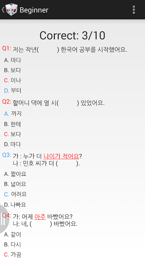 Select Korean and start the quiz. No need to create an account or provide credit card details – it’s free! Get your results After taking the quiz, you will receive your results by email. And for a small fee, get your own personal certificate! Share your results Let your boss know, invite your friends, post on social media….Korean Quizzes. Try our fun Korean quizzes and test your Korean language skills today. Our Korean quizzes include vocabulary quizzes, grammar quizzes, culture quizzes, and more fun quizzes to test your knowledge of Korea and the Korean language.Korean alphabet quiz. KOREAN LEVEL 1 TEST/ Korean alphabet quiz This is a very simple vocabulary quiz for Korean language beginners. If you want to learn Korean From...These online quizzes are based on the Korean content in the Transparent Language's Languages of the World program. To start over press the Reset button. PART I: Fill in the Blank Pick the Korean word that matches the English word in square brackets. EXAMPLE: bahng [key] joo-se-yo. sook-bang-nyo-ga key-rul tibi. 1.Can you survive in Korea – Absolute Basic Korean Quiz Take this quiz to test your knowledge of the basic Korean phrases and expressions essential to survive in Korea. Time limit: 0The Korean alphabet quiz is an online quiz that's helpful if you're in the process of familiarizing yourself with Korean vowels and consonants. By taking on our Korean Alphabet Quiz, you'll be met with multiple-choice questions, and you should identify the Korean letters shown.You have some knowledge of the language but there are still some gaps. Not bad, but the sky's the limit. Fighting! Share the quiz with friends and find out their knowledge of Korean. Local. It seems you are pretty good at hangul. Impressive! It's time to learn hieroglyphs :) Share the quiz with friends and find out their knowledge of Korean.This Korean proficiency test follows the guidelines of the Common European Framework of Reference for Languages (commonly abbreviated with CEFRL, CEFR or CEF). These recommendations of the Council of Europe will help you see on which level (A1 - …